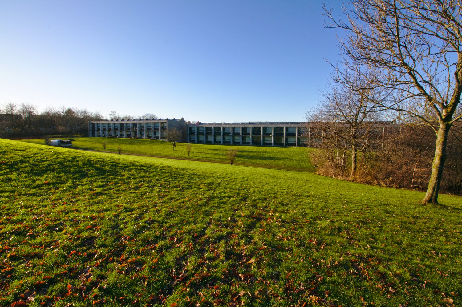 Po nějaké době se nám v Aarhusu udělalo hezké počasí, a tak jsem neváhal a během těch pár hodin slunečního svitu vyrazil ven. Podařilo se mi vyfotit sluncem zalité dvorky Skjodhøj Kollegiet a přilehlá jezírka (pro astronomické a zeměpisné nadšenci - všimněte si jakou jsou dlouhé stíny a to prosím bylo v čase focení poledne, tedy jak nízko si Slunce na obloze hoví).